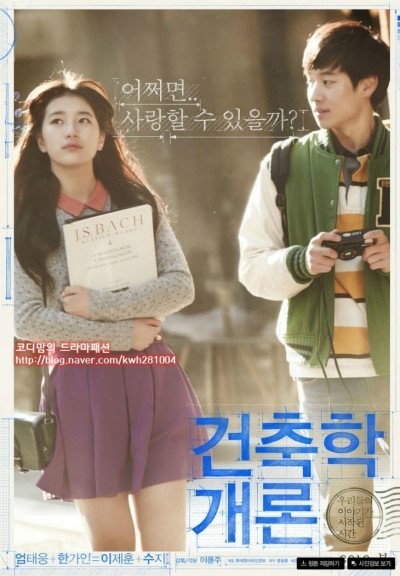 2012년도에 개봉한 로맨스 장르 영화로 대한민국 첫사랑 영화라는 타이틀이 생길 정도로 유명해진 영화다. 최종 관객수는 411만명으로 로맨스 장르 영화로 흥행한 작품이다. 영화의 배경은 1996년도로 시작되어 사람들에게 향수를 불러 일으킬 만한 요소를 넣기 위해 이용주 감 독은 배경과 의상 등에 심혈을 기울였다고 한다. 그만큼 사람들의 옛날 추억을 되살릴 수 있는 그 시대 추억영화로 자리잡은 건축학개론이다. 영화의 시작은 두 남녀의 이야기로 시작된다. 20살에 풋내기 대학에 입학한 새내기들이 가득한 학교 안, 승민(이제훈)과 서연(수지)는 건축학개론 수업에서 만나게 된다. 음대 전공이지만 건축학에 궁금증이 많던 서연은 건축학개론 수업을 듣게 되고, 승민은 서연에게 첫 눈에 반하게 된다. 수업 첫 날 교수는 자신이 살고 있는 마을에 대해 조사하라는 과제를 내주게 되고 승민과 서연은 둘이 같은 동네에 살고 있음을 알게 된다. 매일 지나다니는 길이었지만 둘이 같이 있음으로써 그 곳은 새로운 공간처럼 느끼면서 둘은 사랑의 감정을 싹 트게 된다. 그렇게 둘은 더욱 친해지게 되면서 마음을 열지만 감정표현이 서툴었던 승민은 어떤 사건을 계기로 서연을 오해하게 되고 둘은 멀어지게 된다. 그렇게 15년이 지난 후, 둘은 우연히 만나게 된다. 35살 건축가가 된 승민 앞에 나타난 서연은 승민에게 자신을 위한 집을 설계해달라고 한다. 자신의 이름을 건 첫 작품으로 제주도에 서연의 집을 짓게 되는데, 다시 만난 그들 앞에 첫사랑의 감정이 떠오르면서 둘의 관계가 오묘해지기 시작한다. 앞으로 그들의 모습은 어떻게 될까?