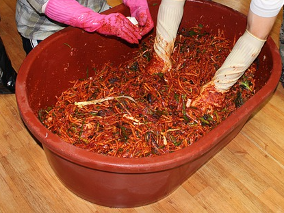 | 김장김치 재료 준비물 절임배추 10kg (5~6포기) - 강원도절임배추, 해남절임배추 찹쌀가루 고춧가루 굵은소금 다진마늘 간생강 멸치액젓 무 쪽파 젓갈 (새우젓,동태젓,명태젓 혹은 가자미식해) 굴 |